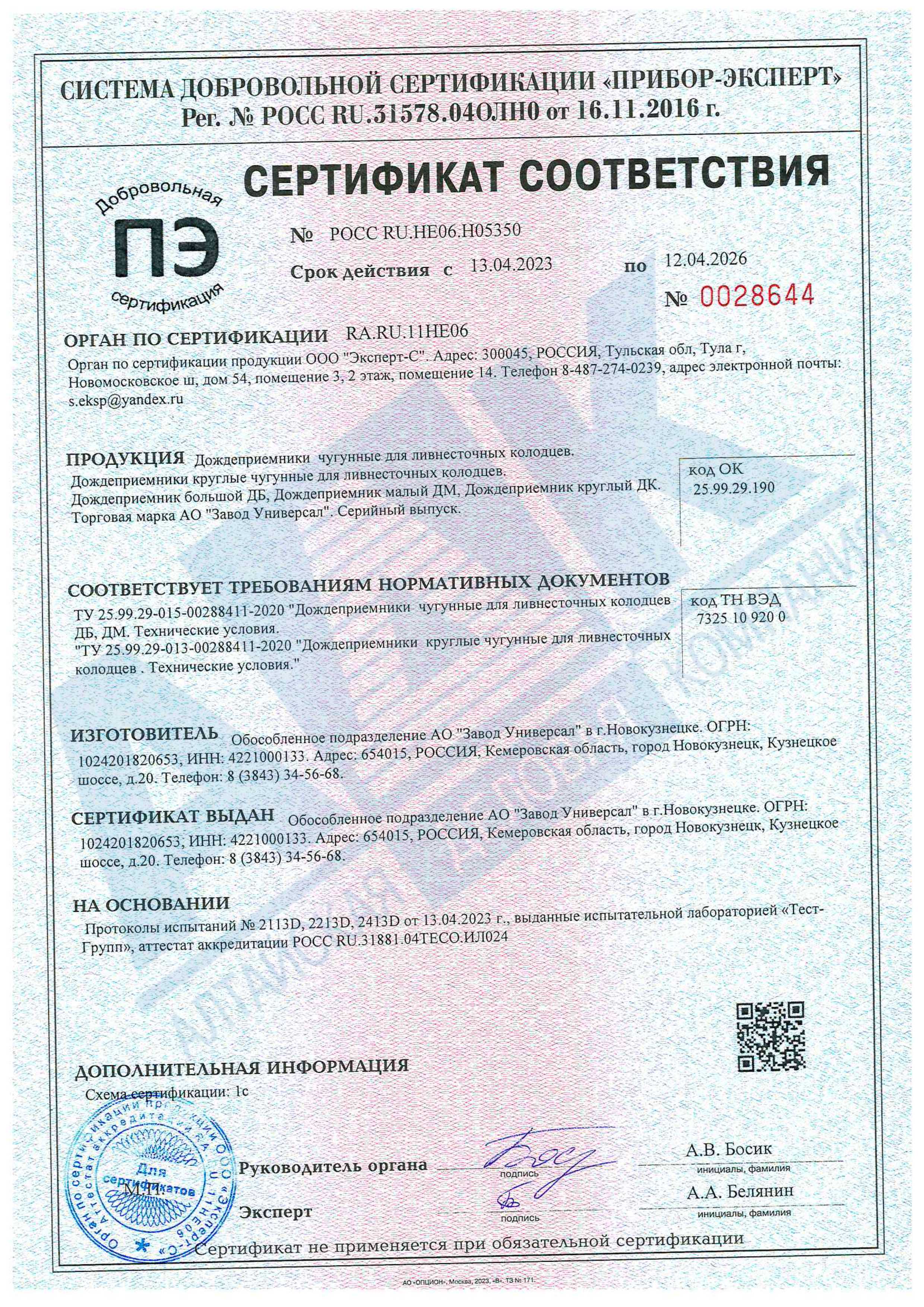 Производитель: Россия, Завод Универсал