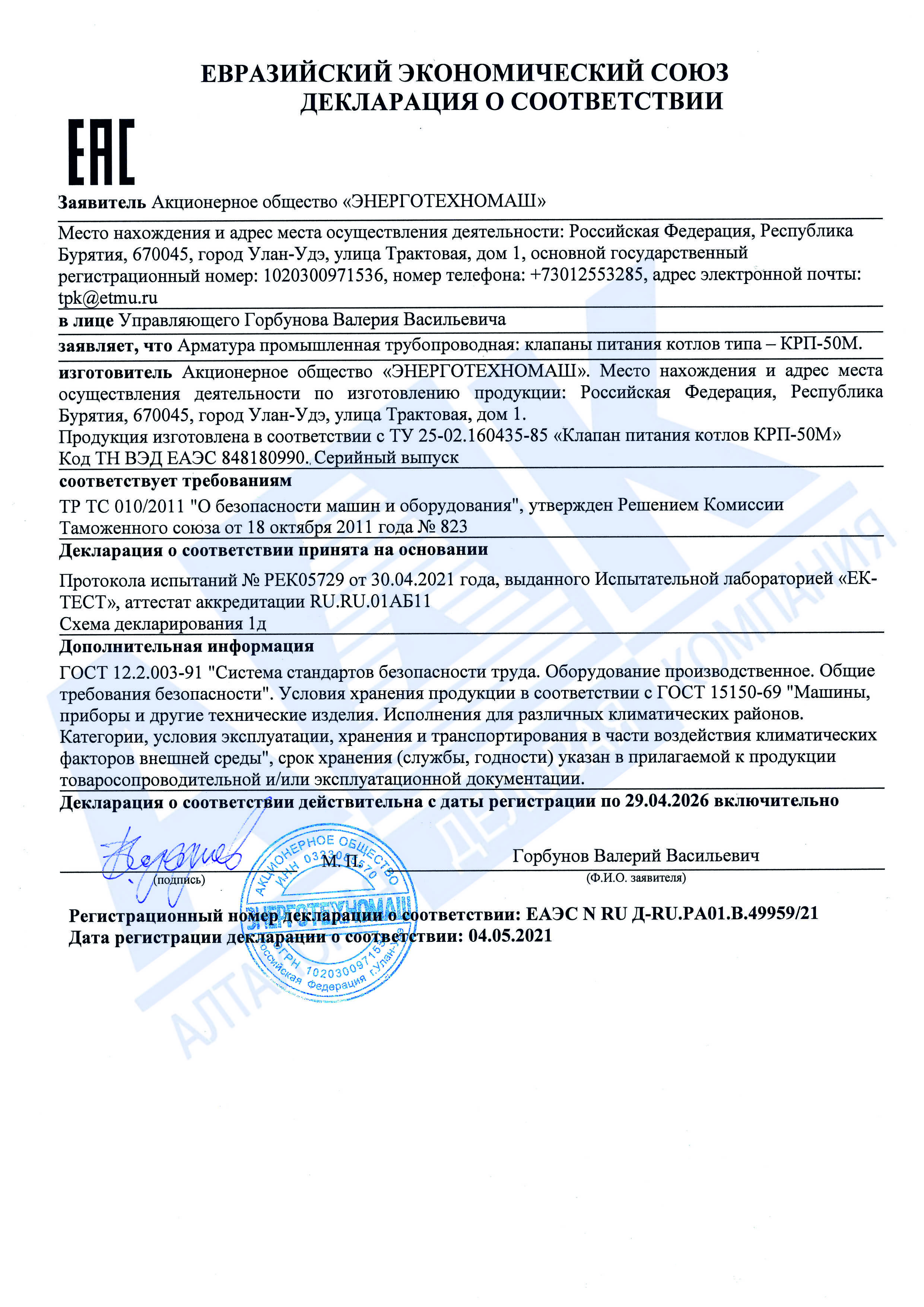 Клапан питания предназначен для автоматического питания и поддержания заданного уровня воды в верхнем барабане котла малой производительности, а также в других аналогичных системах.Максимальная температура регулируемой среды не должна превышать предел +180°С.