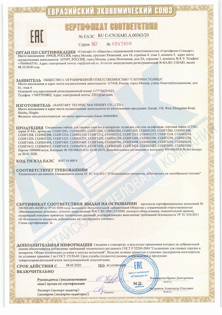 Подводка д/газа сильфон. 3/4" г/г 80 см ГАЗ