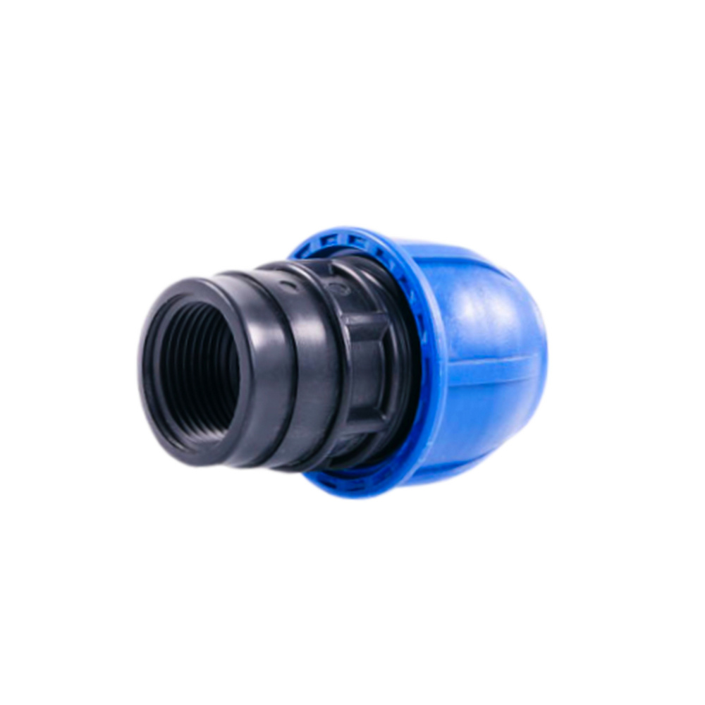 Муфта компрессионная с внутренней резьбой применяется для соединения полиэтиленовых труб с другими компрессионными фитингами, имеющими наружную резьбу, с шаровыми кранами, переходниками.
